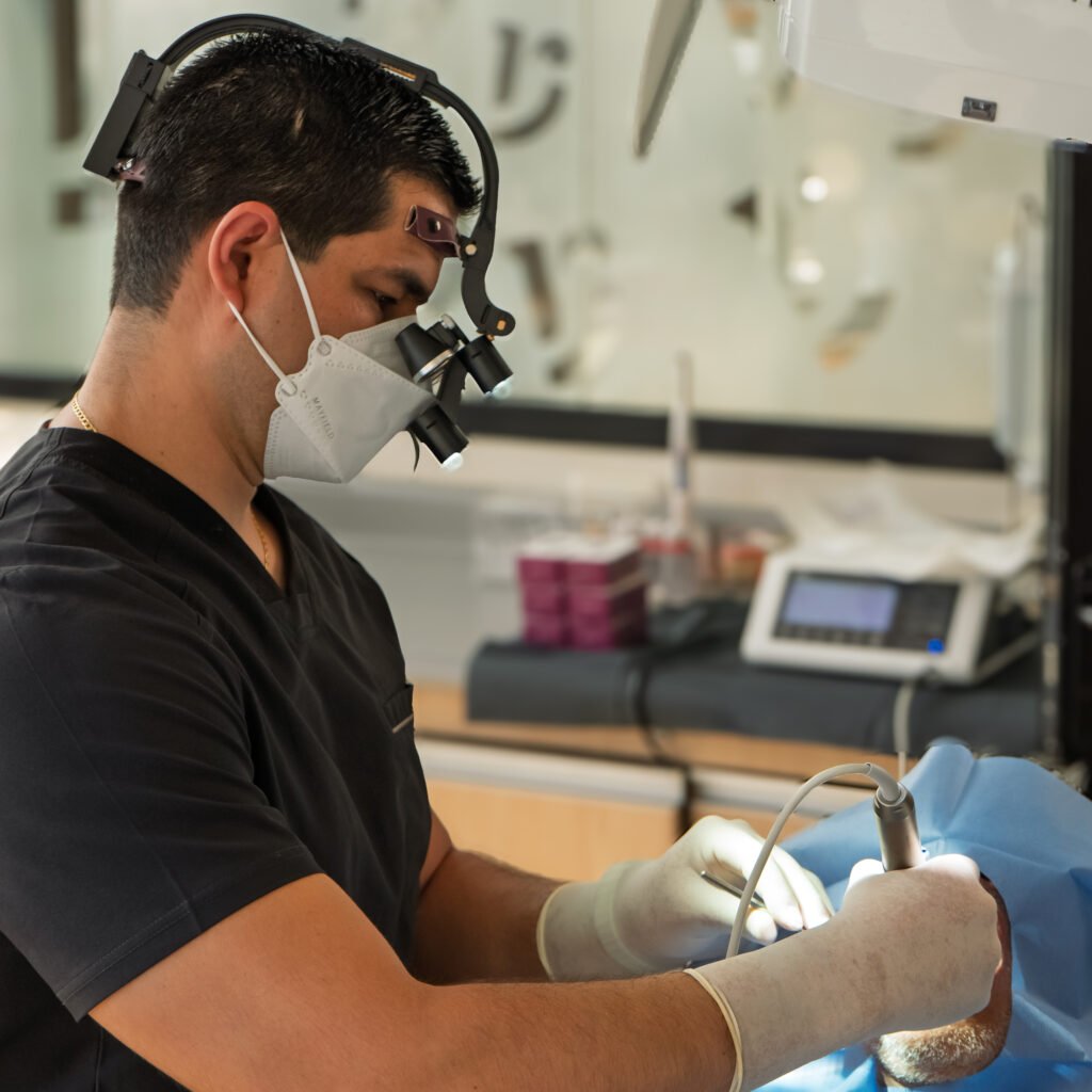 Esta primera fase es de suma importancia para el éxito del tratamiento, durante este proceso se realizará un escaneo 3D, set de fotografías intraorales y extraorales, tomografía cone beam, registro de la mordida, y se confeccionará una guía tomografía y quirúrgica personalizada.